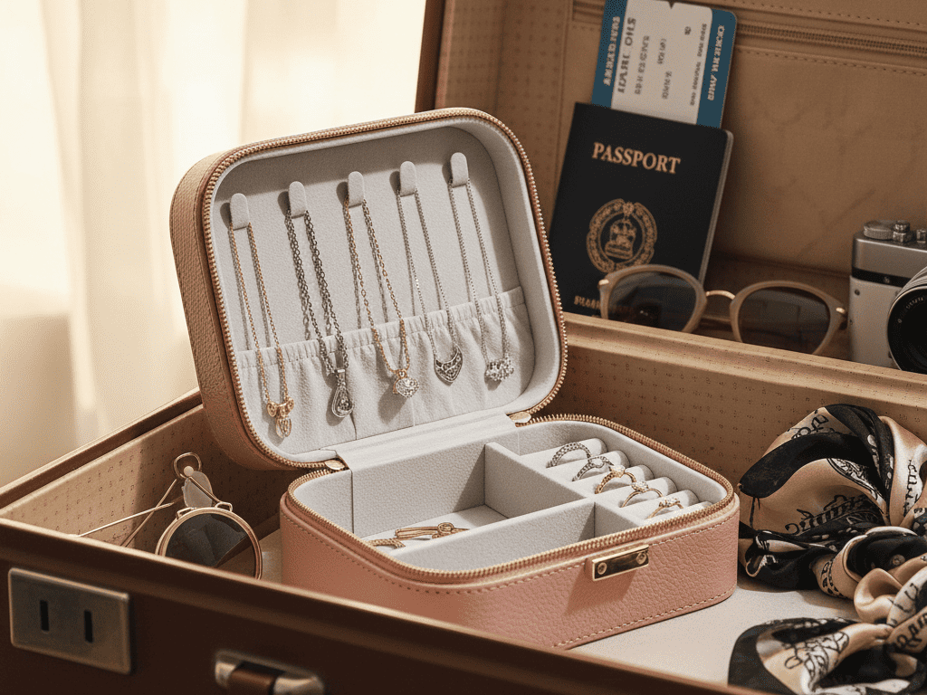 Si les astuces DIY sont pratiques, la solution la plus élégante et la plus sûre reste une boîte à bijoux de voyage ou une pochette spécialement conçue.