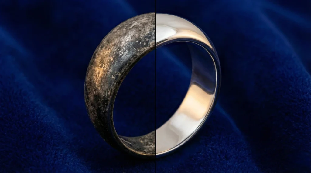 C’est le paradoxe de l’argent : plus vous le portez, moins il noircit. La friction naturelle contre vos vêtements et votre peau (si votre pH le permet) agit comme un polissage constant qui empêche le sulfure de s’installer durablement.
